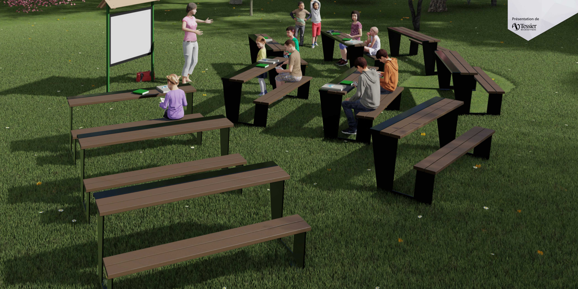 Gagnant du Volet jeunesse (2021) : Un lieu de réunion extérieur (de style classe verte) afin de pouvoir animer des rencontres en plein air pour les étudiants et la population. Installation de bancs ergo 360 qui seront installés devant l’école (bancs de style pupitre qui sont résistants et fabriqués localement en matériaux récupérés). Il y aura également une partie du terrain qui sera reverdie par la création d’espaces verts avec plantes vivaces et d’arbustes fruitiers.