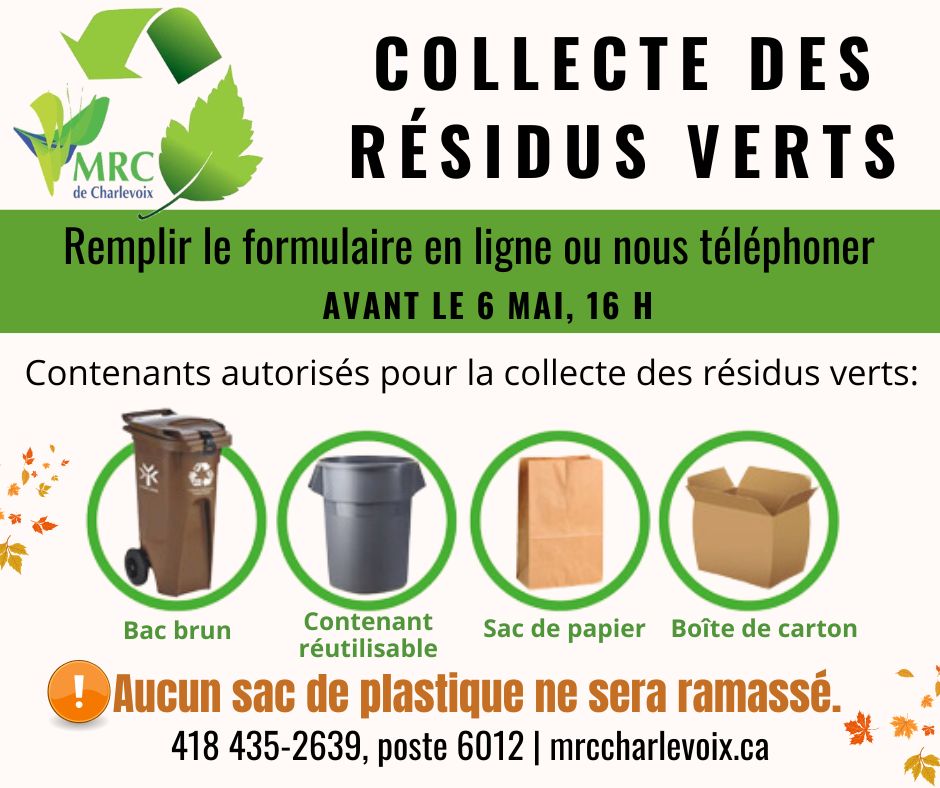 La collecte des résidus verts aura lieu dans toute la MRC de Charlevoix au printemps 2026.