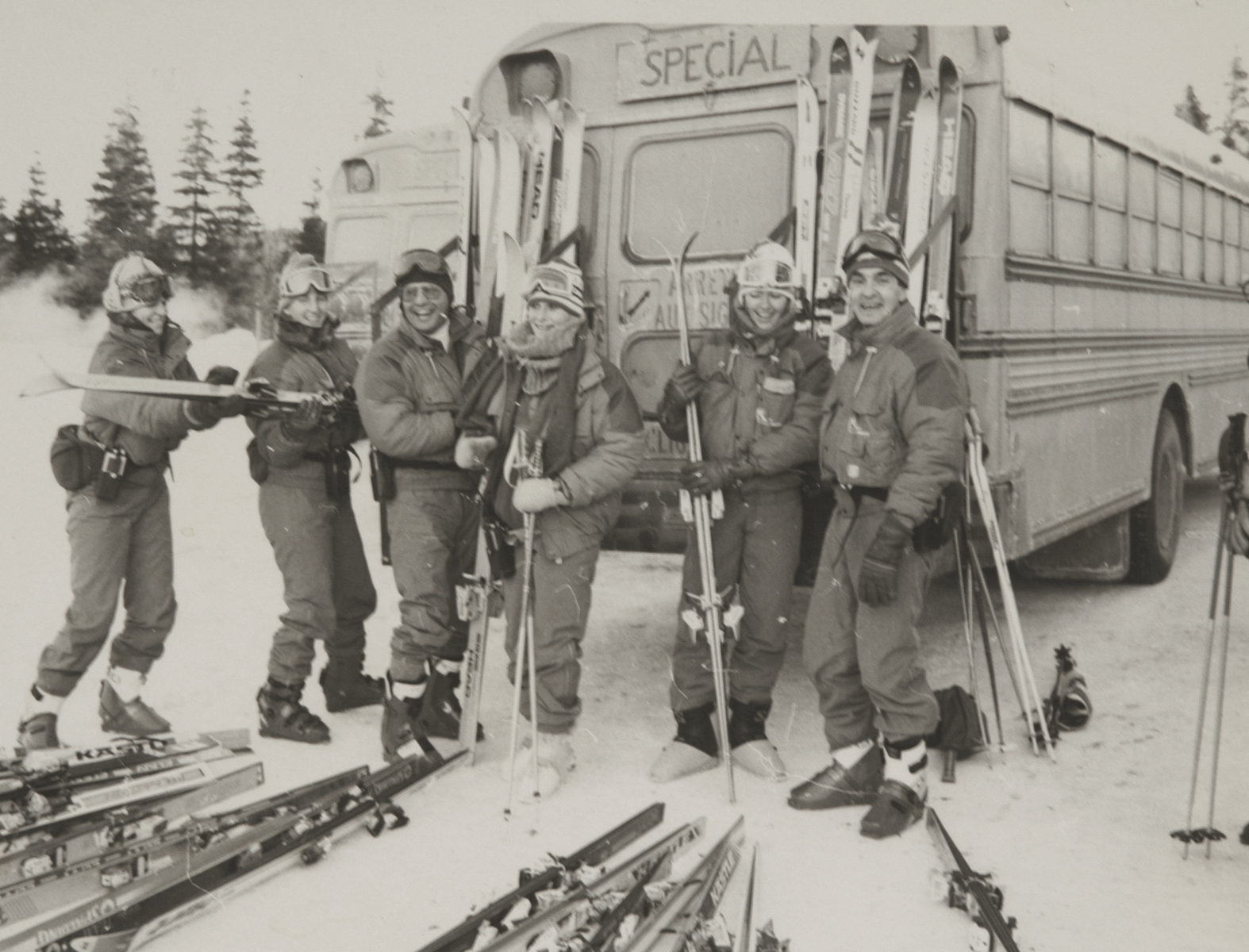 À cette époque, huit autobus scolaires transportent les skieurs, avec des chansonniers à bord pour agrémenter le voyage. M. Lucien Lajoie est le premier chauffeur. Une journée de ski coûte alors 20 $, et une descente supplémentaire, si les conditions le permettent, est offerte pour 5 $.