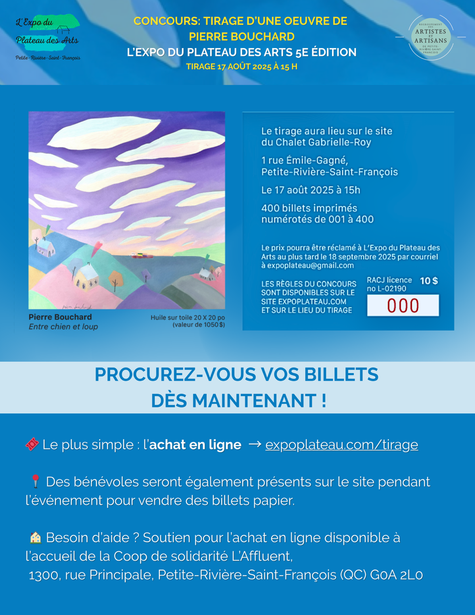 🎟️ Billets en vente dès maintenant pour le tirage du 17 août !