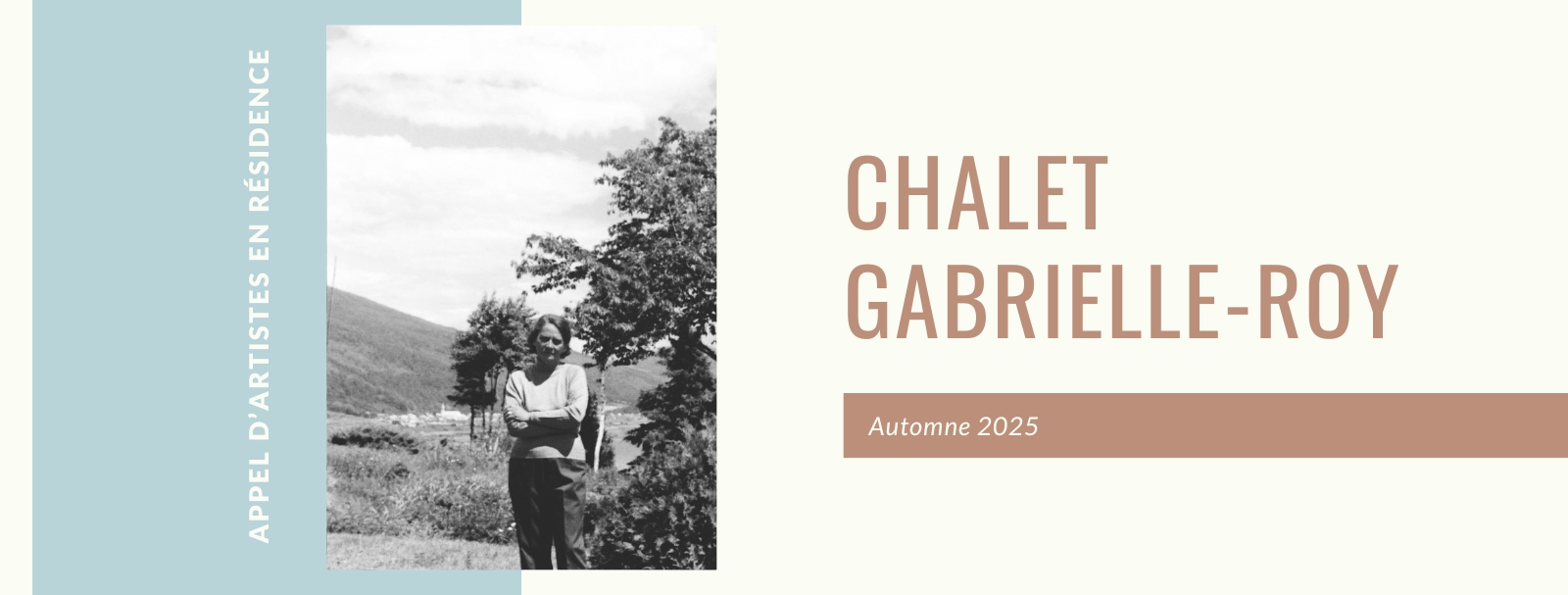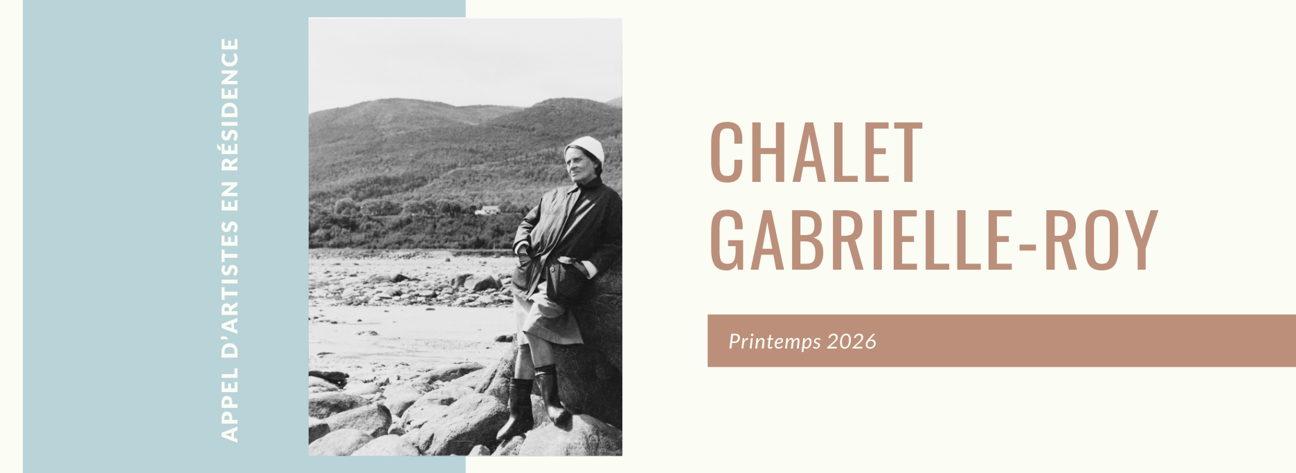 La Municipalité de Petite-Rivière-Saint-François, propriétaire du chalet Gabrielle-Roy depuis six ans, lance son troisième appel de candidatures pour une résidence d’artiste à l'automne. En vertu de l’entente conclue entre la Municipalité et le Fonds Gabrielle Roy qui lui cédait le chalet en décembre 2017, les lieux qui auront inspiré la romancière durant 25 ans doivent servir chaque année comme résidence d’artiste pour une période minimale de trois semaines. En 2026, cette résidence sera offerte entre le lundi 1er juin et le vendredi 19 juin 2026. La résidence au chalet Gabrielle-Roy s’adresse à des artistes de la relève ou à des artistes établis, de nationalité canadienne. Les candidats devront produire un dossier démontrant la pertinence de leur résidence au chalet. En outre, leur projet de création durant le séjour devra s’inscrire en lien avec l’oeuvre ou avec les valeurs de Gabrielle Roy.